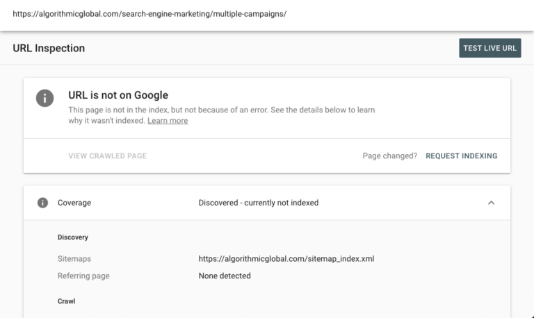 To have your content indexed by Google Search Console, simply type the URL into the search box and click the “request indexing” button. It could take up to two minutes to request indexing. You’ll notice a checkmark that says “index requested” after Google gets your request.